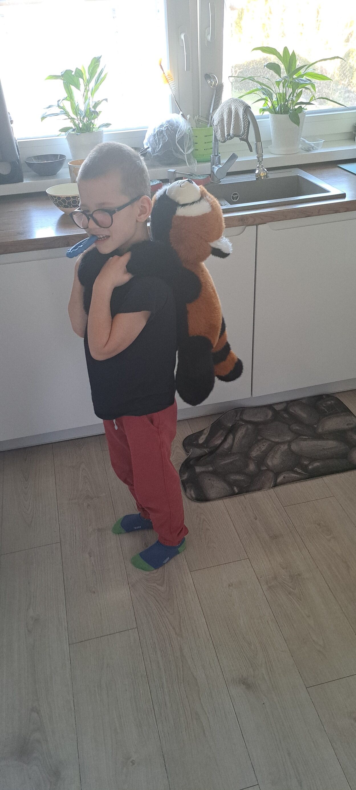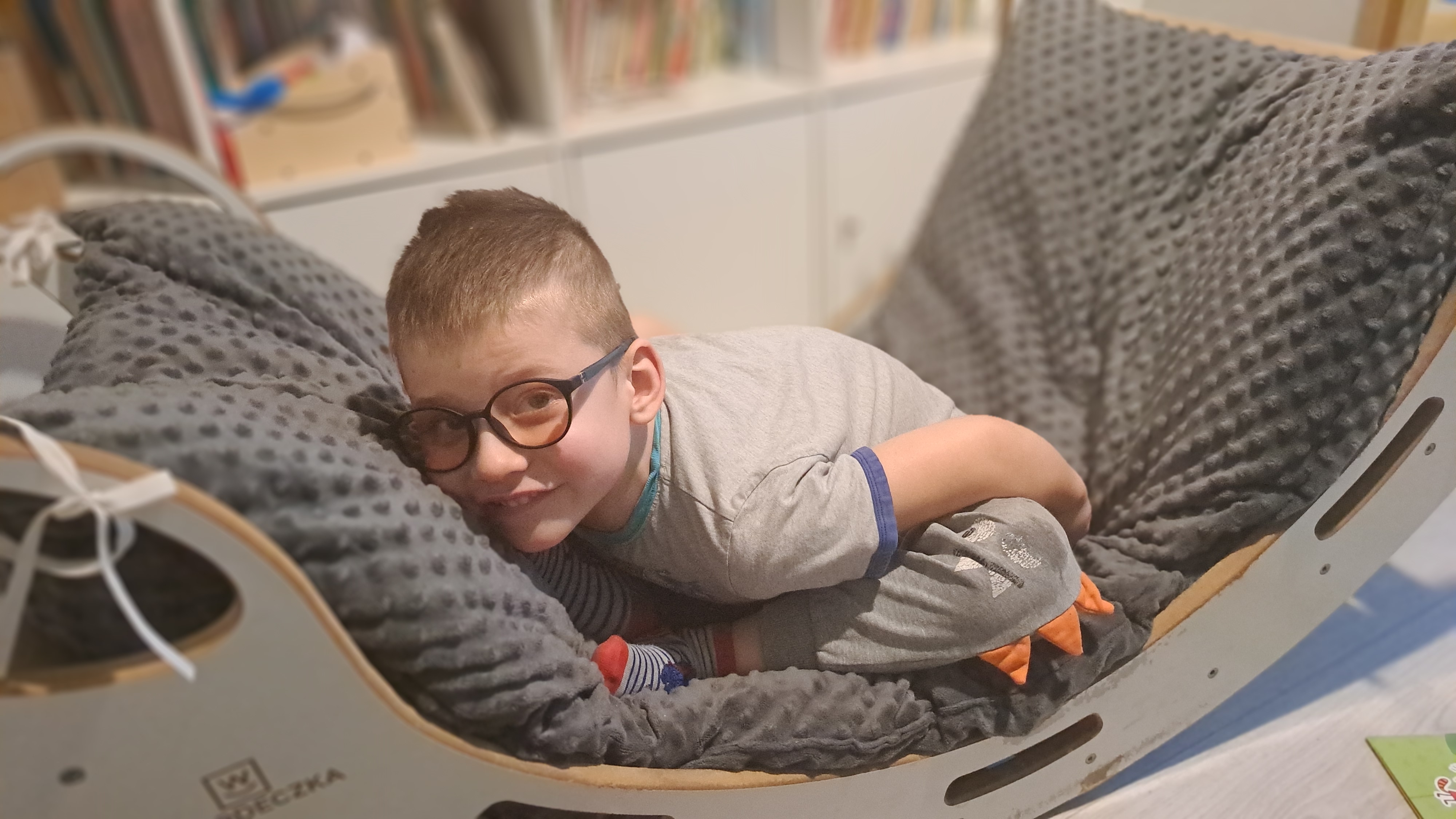 Radek chodzi teraz do przedszkola, gdzie ma swoją „drugą Mamę” i cudowny, wspierający jego potrzeby zespół. Jest objęty opieką neurologiczną, okulistyczną, ortooptyczną, logopedyczną, fizjoterapeutyczną, pedagogiczną, psychiatryczną i psychologiczną. Uczęszcza na basen i zajęcia integracji sensorycznej. Wprowadzamy też komunikację alternatywną i walczymy z odpieluchowaniem.